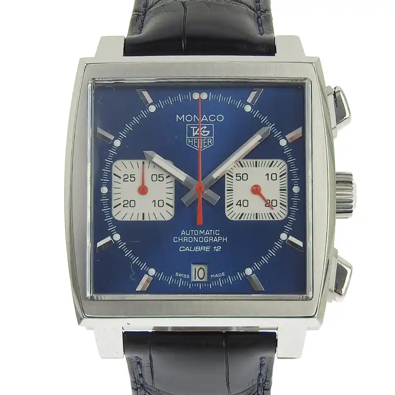 タグ・ホイヤー TAG HEUERモナコ キャリバー12腕時計ケース:シルバー ベルト:ブラック 文字盤:ブルー
